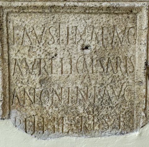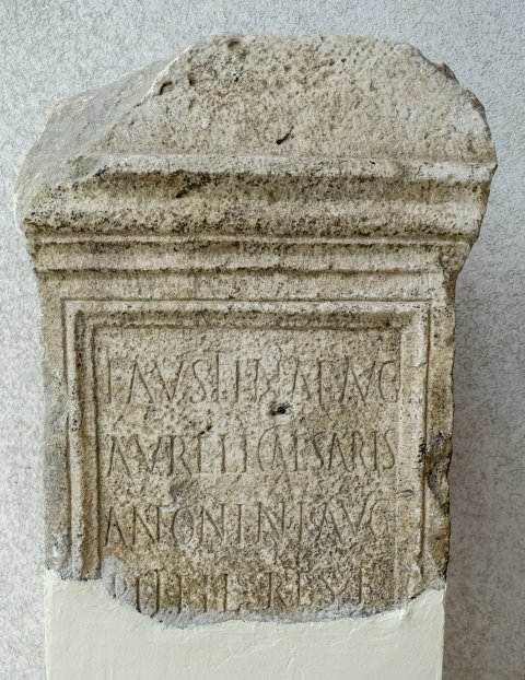 - Faustinae Aug(ustae) / Aureli Caesaris / Antonini Aug(usti) / Pii fil(iae) res p(ublica) / [---