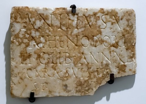 - Anthusa / Athenodori / et C(ai) lib(erta) ann(orum) XL / cara suis h(ic) s(ita) e(st) / s(it) t(ibi) t(erra) l(evis)