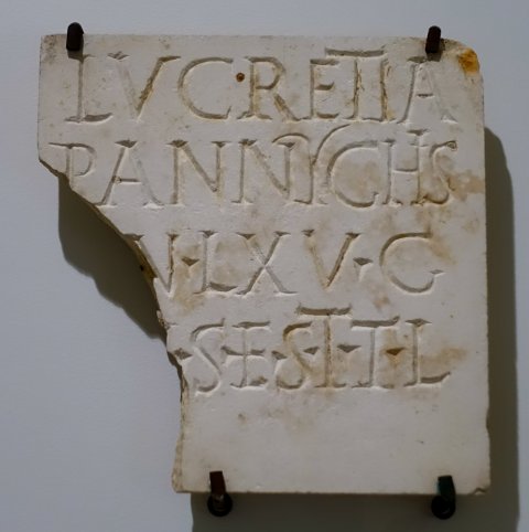 - Lucretia / Pannychis / [a]n(norum) LXV c(ara) / [s(uis)] h(ic) s(ita) e(st) s(it) t(ibi) t(erra) l(evis)