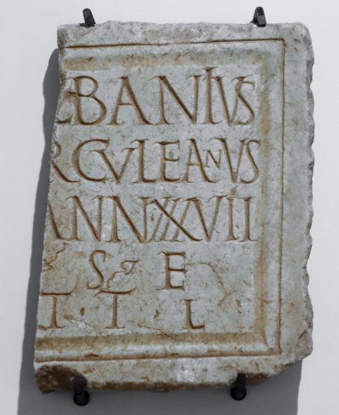 - [A]lbanius / [He]rculeanus / ann(orum) XXXVII / [h(ic)] s(itus) e(st) / [s(it)] t(ibi) t(erra) l(evis)