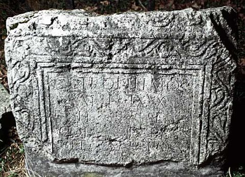 - Kranzdarstellung im Hauptbildfeld (zur Verzierung siehe: Aquincum)