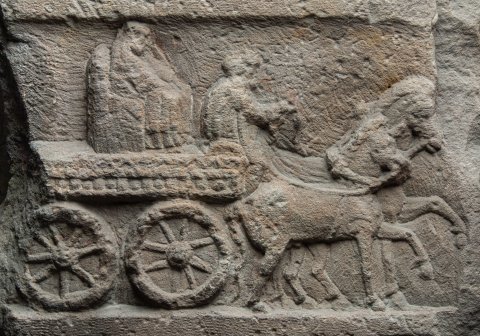 - Totenopfer und Wagenszene, Efeuranke als Rahmenverzierung, Schriftcharakter