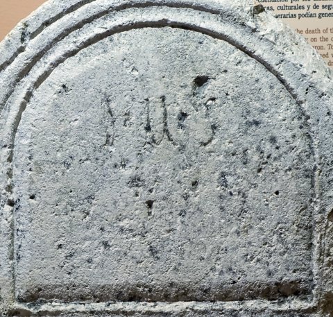 - Stele mit Bogenabschluss, im Bogenfeld DMS