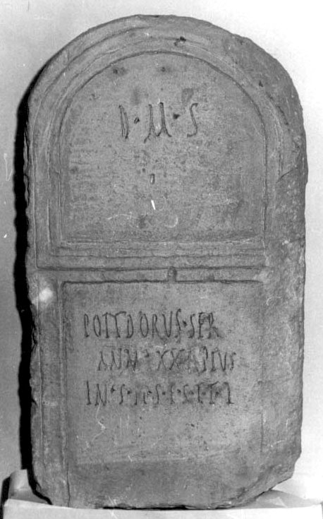 - D(is) M(anibus) s(acrum) / Polydorus ser(vus) / ann(orum) XXII pius / in s(uis) h(ic) s(itus) e(st) s(it) t(ibi) t(erra) l(evis)