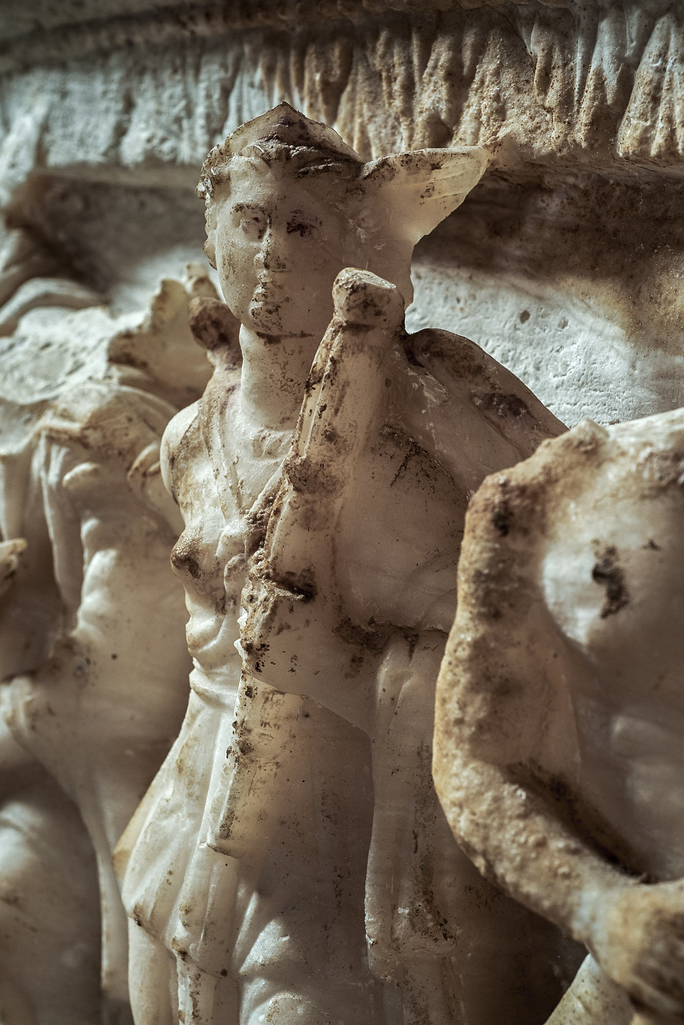 31586 Etruskische Aschenurne mit Entführung der Helena