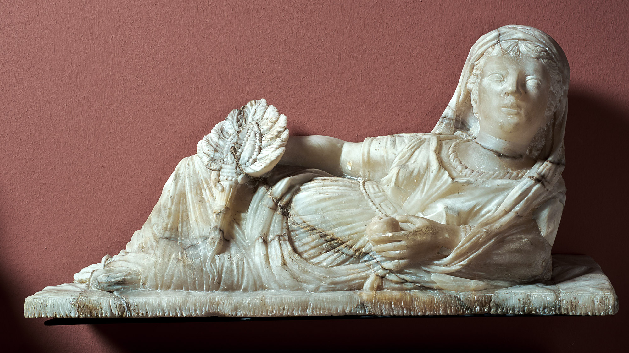 31586 Etruskische Aschenurne mit Entführung der Helena