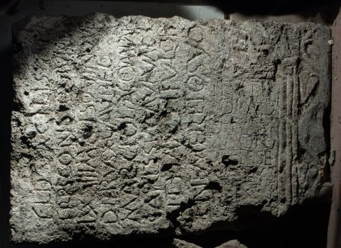 Palimpsestinschrift (zweimal als Grabmal verwendet)