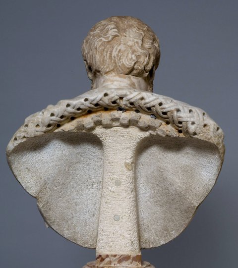 - Nase ergänzt, Bruch durch den Hals, Büste nicht zugehörig, aus einem antiken Tondo gearbeitet
