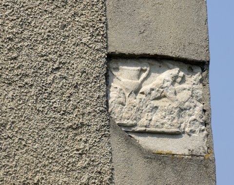- Nonnberggasse Nr. 5, an der Hausecke hoch oben eingemauert