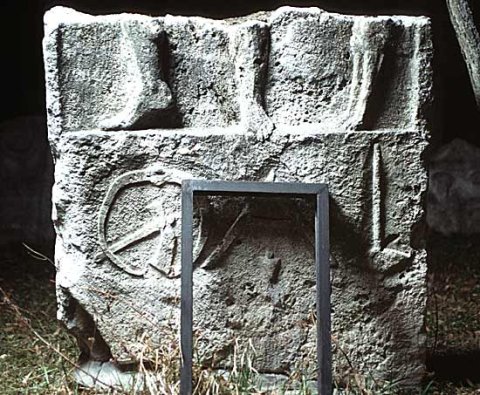 - zweimal als Grabstein verwendet, obere Hälfte fehlt