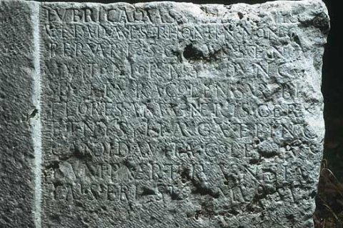 - Lubrica quassa levis [fragilis bona vel mala fallax] / vita data est homini non c[erto limite cretae] / per varios casus ten[uato stamine pendes] / vivito mortalis dunc(!) [dant tibi tempora Parcae] / seu te rura colens urbe[s seu castra vel aequor] / flores aura Veneris Cere[ris bona munera carpe] / et Nysyi(!) largae et ping[uia dona Minervae] / candida(m) vita(m) cole ius[tissima mente serenus] / iam puer et iuvenis iam [vir et fessus ab annis] / talis eris tumulo sup[erumque oblitus honores]