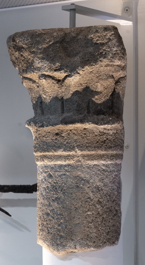 - Säulen mit glattem Schaft, Doppelwulstbasis und einfachem Blattkapitell