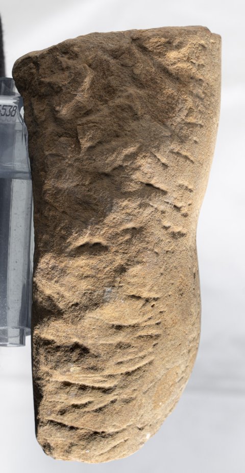 - Mythische Figur: das Knie von einem hochgestellten Bein mit abgeschlagenem Ansatz einer darauf gestützten Hand und der abgewinkelte Arm gehörten zu einer Neptun-Statue, siehe Nr. 6018, 14929.