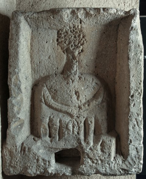 - Rechtecknisch mit kauernder (?) Frau mit entblößter Vulva ? (Entbindungsszene ?)