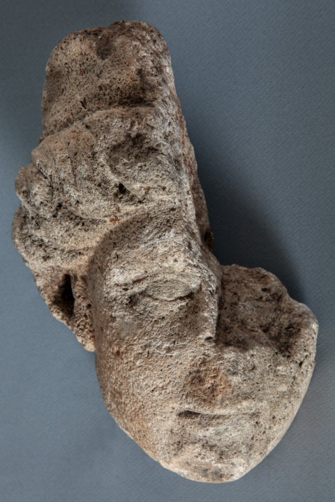 - bestoßen, unter dem Kinn abgebr., linke Seite des Kopfes bis auf Höhe der Nasenspitze weggebrochen
