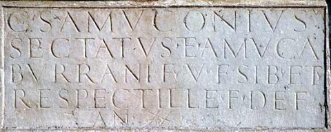 - C(aius) Samuconius / Spectatus et Amuca / Burrani f(ilia) v(ivi) f(ecerunt) sib(i) et / Respectill(a)e f(iliae) def(unctae) / an(norum) XX