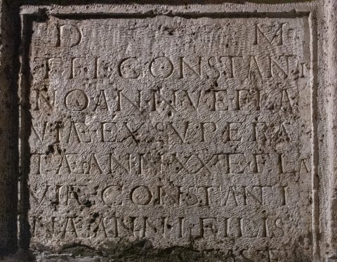 - D(is) M(anibus) / T(ito) Fl(avio) Constanti/no ann(orum) V et Fla/viae Exsupera/tae ann(orum) XX et Fla/viae Constanti/nae ann(orum) II fili(i)s / T(itus?) [---]tas et / [---