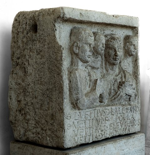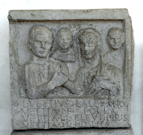 - |(Obitus) L(ucius) Vettius |(mulieris) l(ibertus) Alexand(er) / |(obita) Vettia L(uci) f(ilia) Polla / Vettia L(uci) l(iberta) Eleutheris / Vettia |(mulieris) l(iberta) Hospita