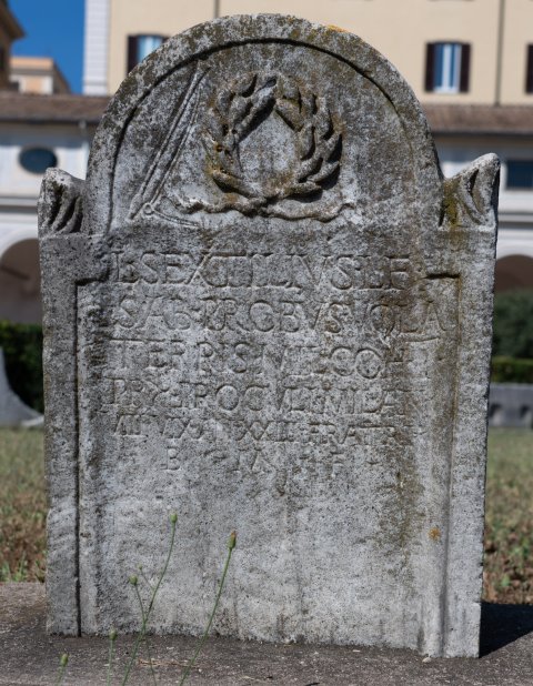 - L(ucius) Sextilius L(uci) f(ilius) / Sab(atina) Probus Vola/terris mil(es) coh(ortis) I / pr(aetoriae) ((centuria)) Proculi mil(itavit) an(nis) / VIII vix(it) an(nis) XXIII fratri / b(ene) m(erenti) f(ecit)