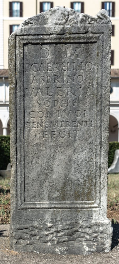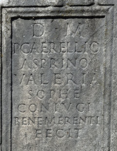 - D(is) M(anibus) / P(ublio) Caerellio / Asprino / Valeria / Sophe / coniugi / bene merenti / fecit