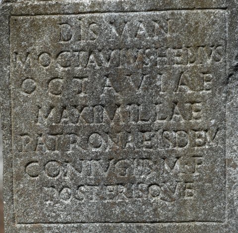 - Dìs Man(ibus) / M(arcus) Octavius Helius / Octaviae / Maximillae / patronae isdem / coniugi b(ene) m(erenti) f(ecit) / posterisque