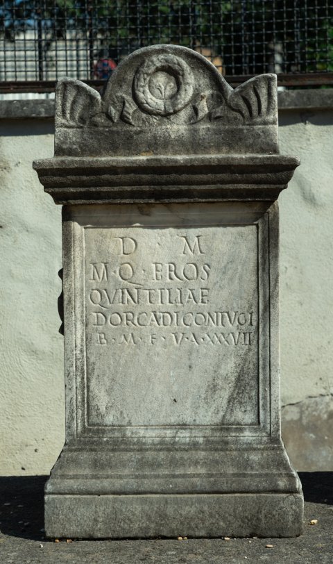 - D(is) M(anibus) / M(arcus) Q(uintilius) Eros / Quintiliae / Dorcadi coniugi / b(ene) m(erenti) f(ecit) v(ixit) a(nnos) XXXVII