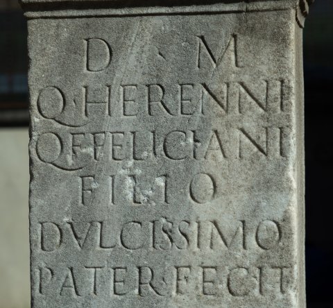 - D(is) M(anibus) / Q(uinti) Herenni / Q(uinti) f(ilii) Feliciani / filio / dulcissimo / pater fecit