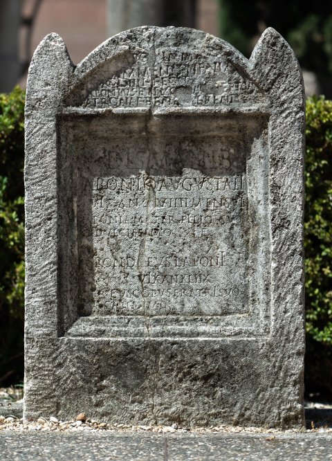 Dis Manib(us) / L(ucio) Aponio Augustali / vix(it) an(nos) XXVIIII mens(es) VI / Aponia mater filio suo / dulcissimo f(ecit) Spondeus L(uci) Aponi s(ervus) / vix(it) an(nos) XIIX / Euscopus fratri suo / carissimo //