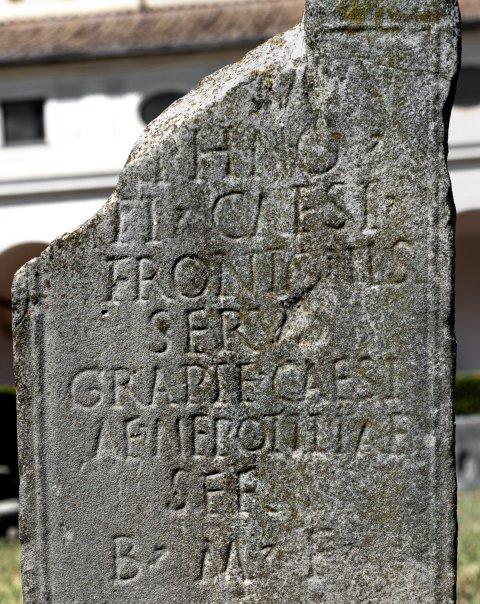 - [D(is)] M(anibus) / [D]aphno / Ti(beri) Caesi / Frontonis / servo / Grapte Caesi/ae(!) Nepotillae / ser(va) / b(ene) m(erenti) f(ecit)