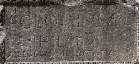 - A(ulus) Clodius A(uli) l(ibertus) / Hilarus / A(ulus) Clodius A(uli) l(ibertus) Optatus / Clodia [A(uli)] l(iberta) ma[t(er)?]