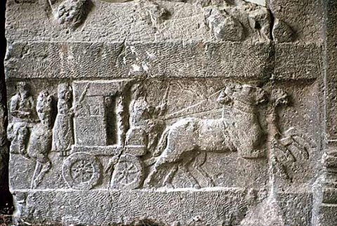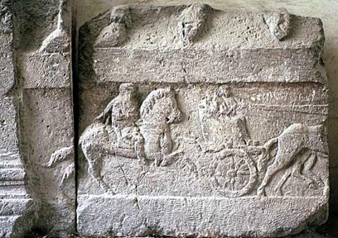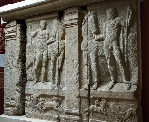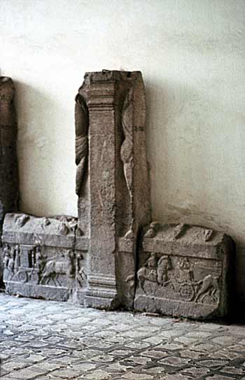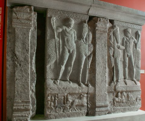 - obere Relieffelder herausgeschnitten, modern ergänzt, rechts abgebr.