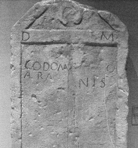 - CIL : D(is) M(anibus) / [------] / I[---] / CODOM[---]ACC[--]O / ARA[---]NIS