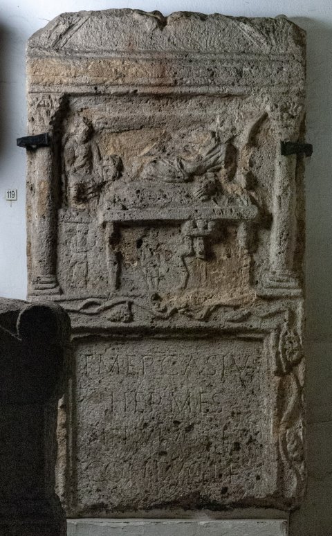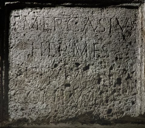 - T(itus) Mercasius / Hermes / sibi vivos (!) et / coniugi f(ecit)