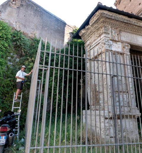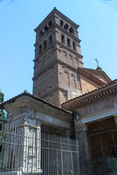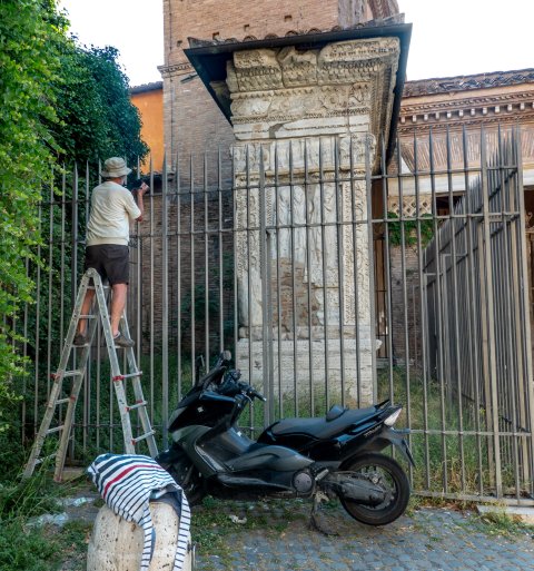 Von Geldwechslern (argentarii) dem Kaiser Septimius Severus und seiner Familie errichtetes Monument auf dem Forum Boarium.
