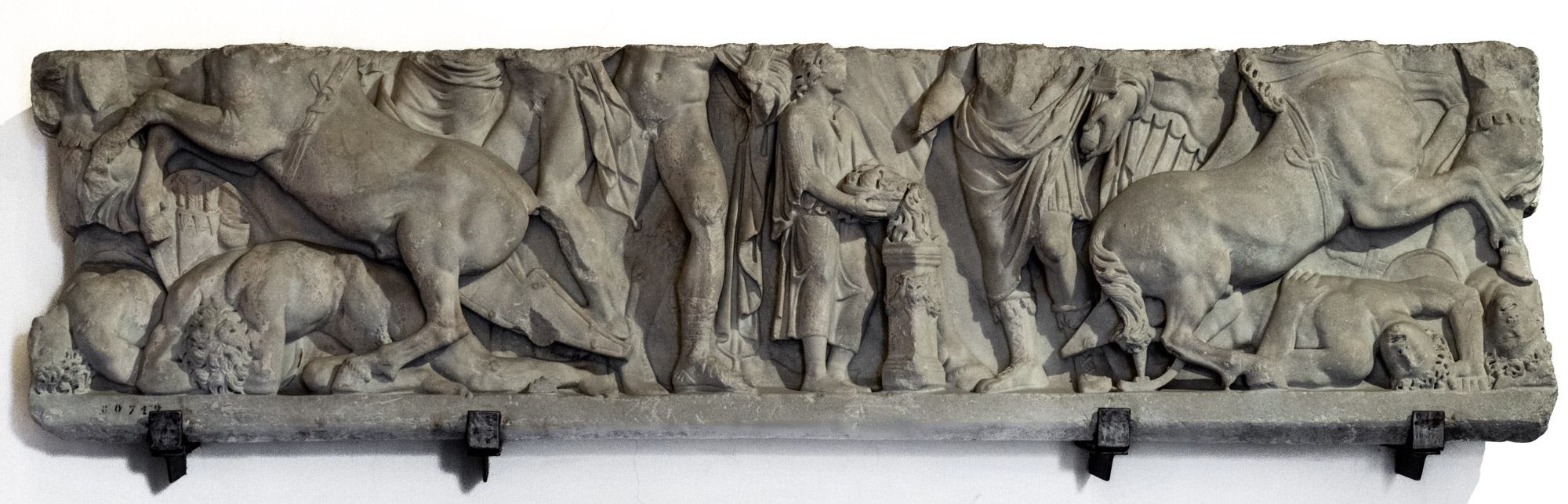 31917 Sarkophagrelief mit Kampfszenen und Opfer