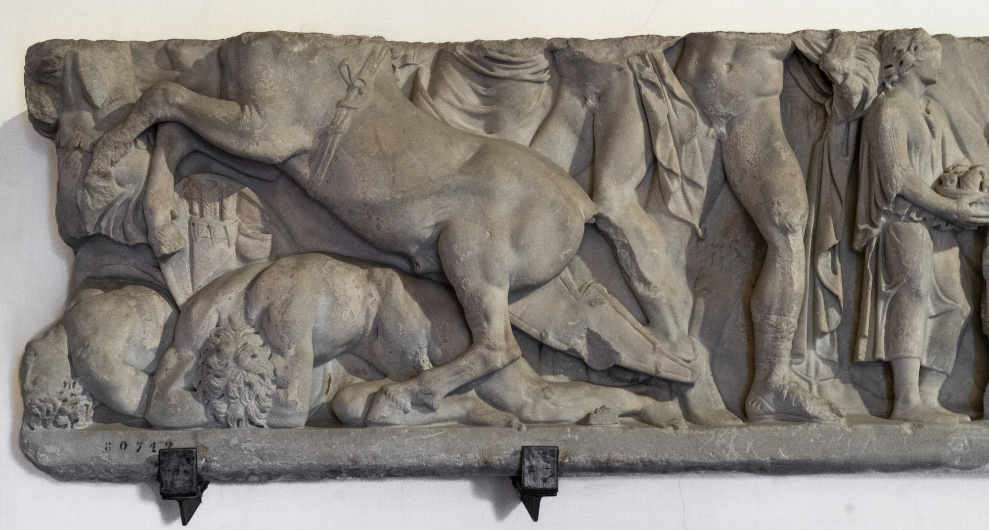 31917 Sarkophagrelief mit Kampfszenen und Opfer