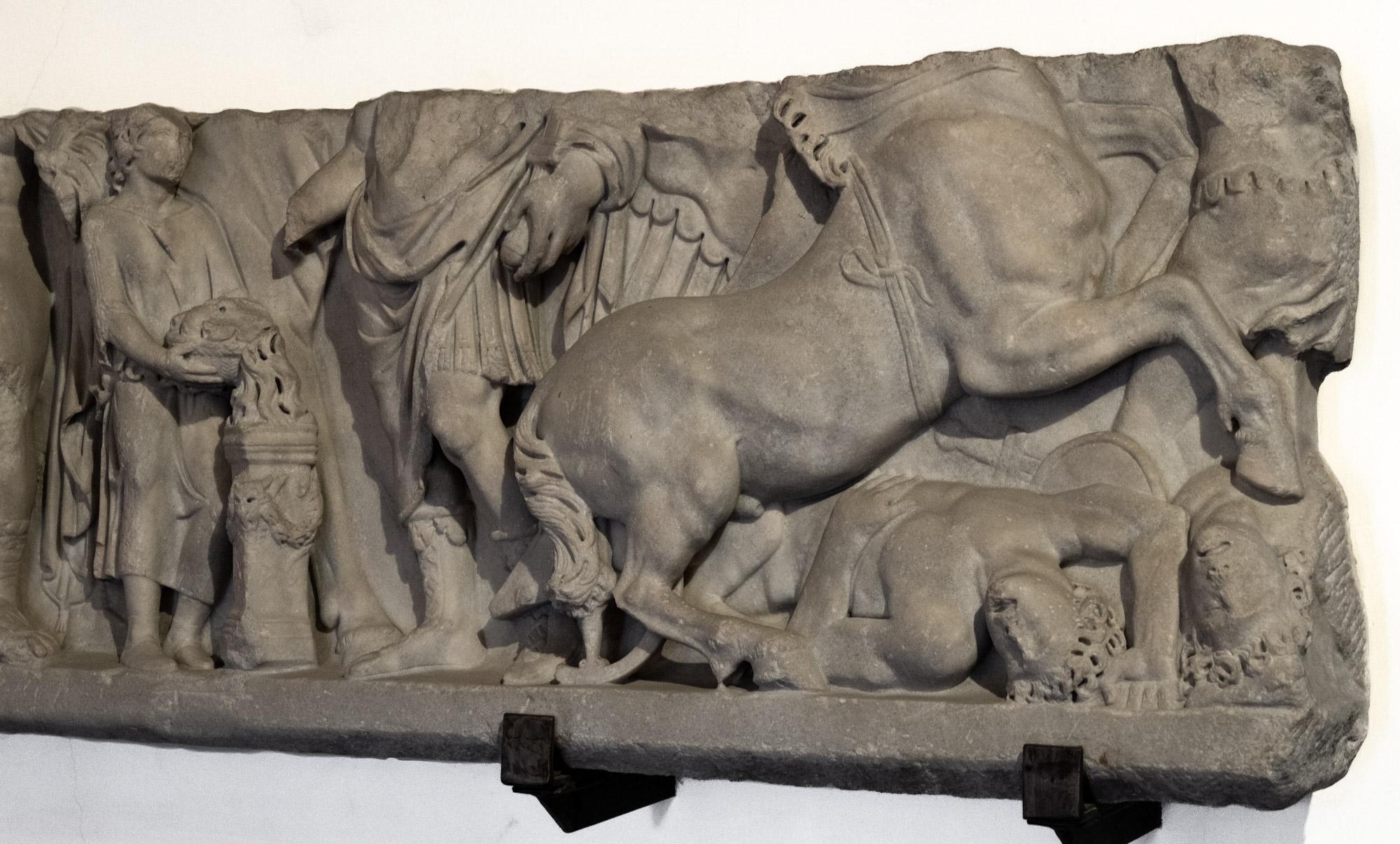 31917 Sarkophagrelief mit Kampfszenen und Opfer