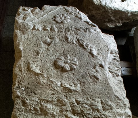 Im Hauptbild Kranz mit Rosette. - Inschrift