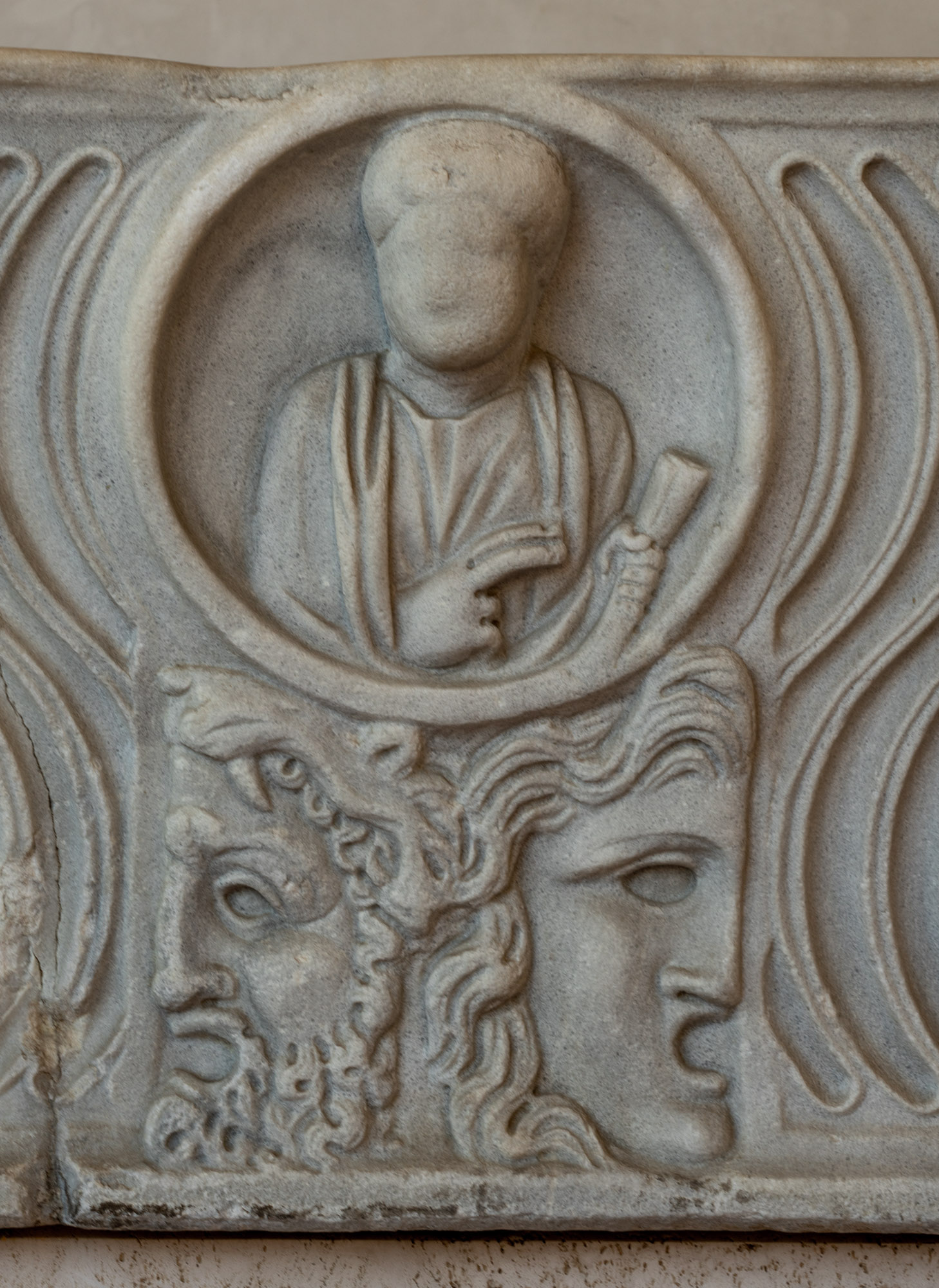 31931 Riefelsakrophag mit Porträtmedaillon