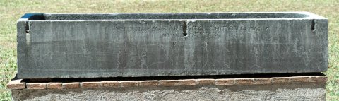 - Deckel fehlt, 3 Klammerlöcher (1 durch die Inschrift)