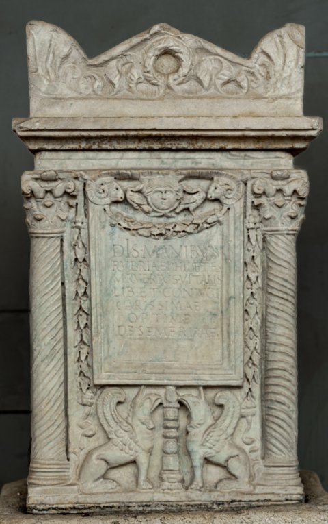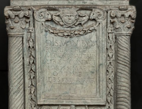 - Dis Manibus / Rubriae Philetes / M(arcus) Rubrius Vitalis / lib(ertae) et coniugi / carissimae / optime / de se meritae