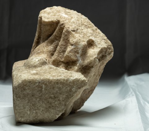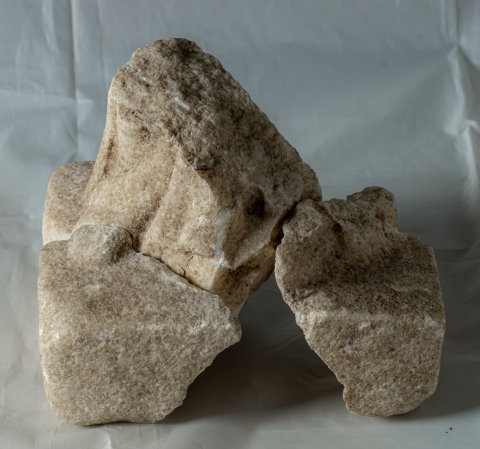 - 3 anpassende Fragmente des Unterteils der Figur und des Sockels