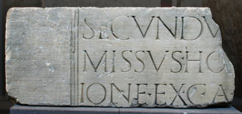 - D(is) M(anibus) / T(itus) Aurel(ius) A(uli) l(ibertus) [---] / Secundu[s ---] / missus ho[nesta miss]/ione ex c(ustode) a(rmorum) v(ixit) [---] / [---
