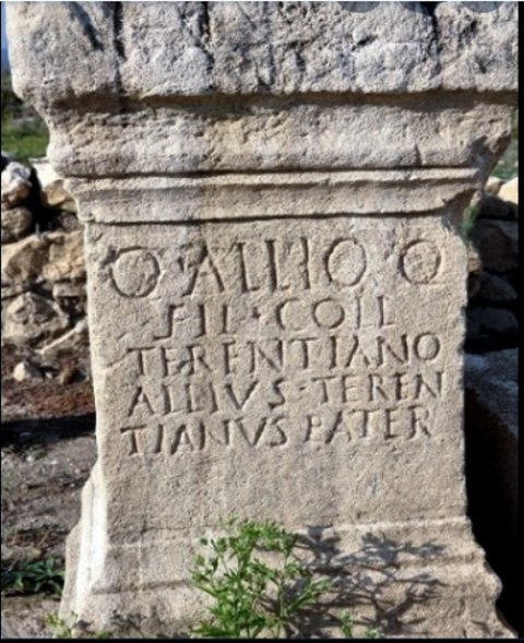 - Q(uinto) Allio Q(uinti) / fil(io) Coll(ina) / Terentiano / Allius Teren/tianus pater