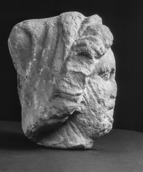 - Mythische Figur: Kopf eines Jünglings (?) mit gelocktem Haar und phrygischer Mütze (Attis ?, Cautes ?)