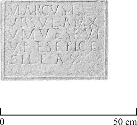 - Marcus e(t) / Ursula Max/umi vi(vi) e(t) sevi (sueis ?) / v(ivi) f(ecerunt) e(t) Sefigi(a)e) / fil(ia)e a(nnorum) XX