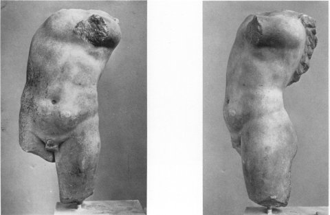 - Torso mit linkem Oberschenkel, Ansatz des linken Arms und des rechten Beins, Flügel tlw. abgebr., im rechten Flügel Dübelloch