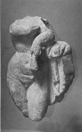 - Mythische Figur: auf einen Pfeiler gelhnt stehender nackter Amor (Eros), rechte Hand auf linker Schulter, in der Linken Rest eines Kranzes (?).