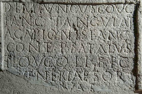 - Cosa Demunci lib(erta) // D(is) M(anibus) // Demiuncus Couci / f(ilius) an(norum) C et Angulat/a Campionis f(ilia) an(norum) C / con(iunx) t(itulum) p(osuerunt) Batalus / et Louco lib(erti) f(aciendum) c(uraverunt et) / Veneriae sor(ori / vi)vae