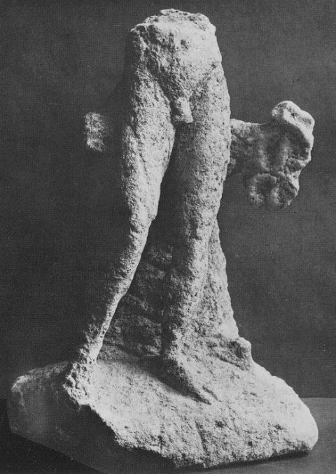 - Oberteil ab Taille fehlt, heute fehlen auch ein Teil der Stütze und der Caduceus